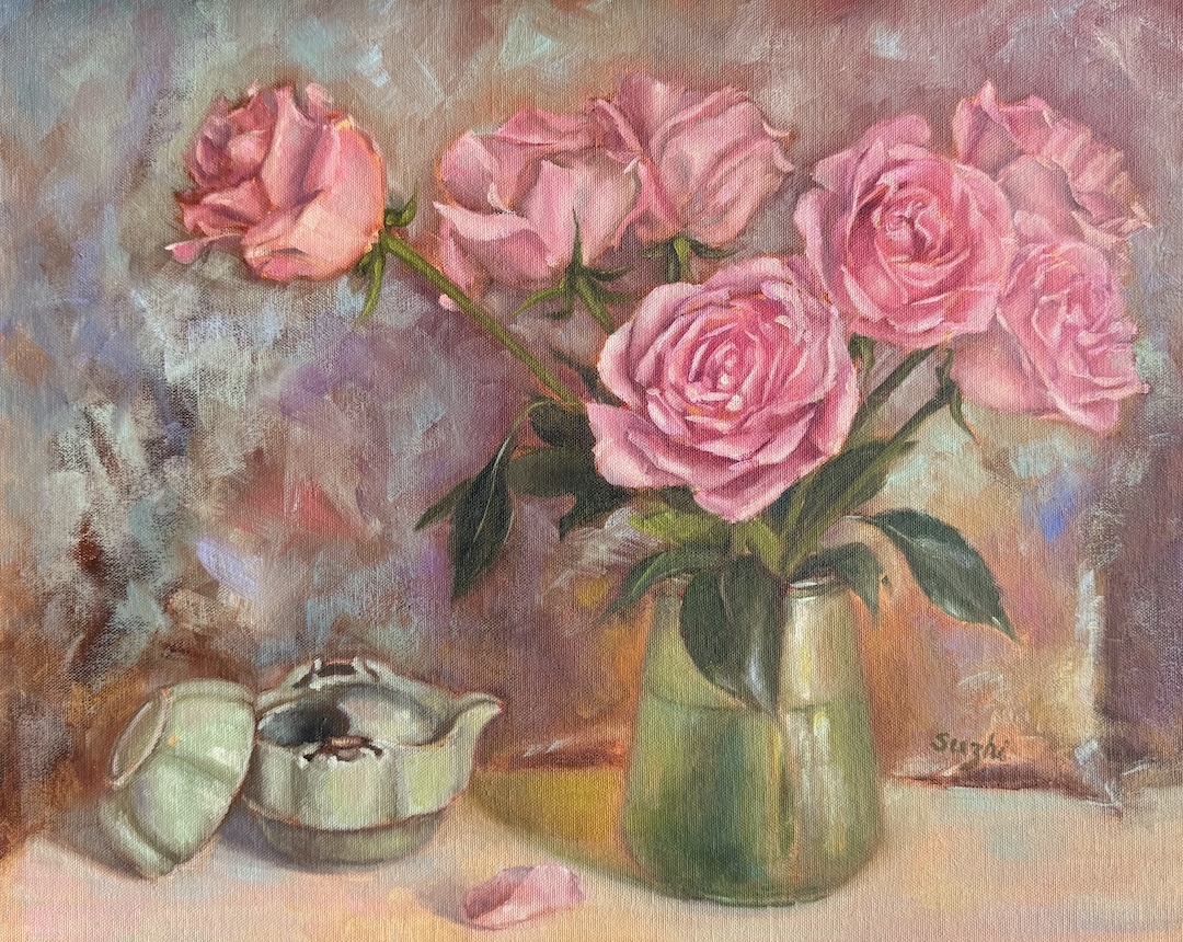 Pink Roses, oil on canvas board, 16 x 20in, 2025