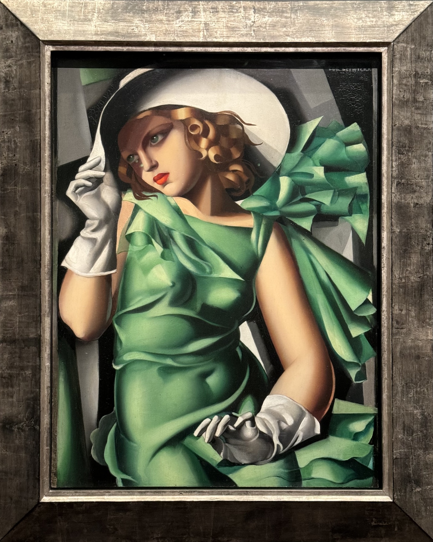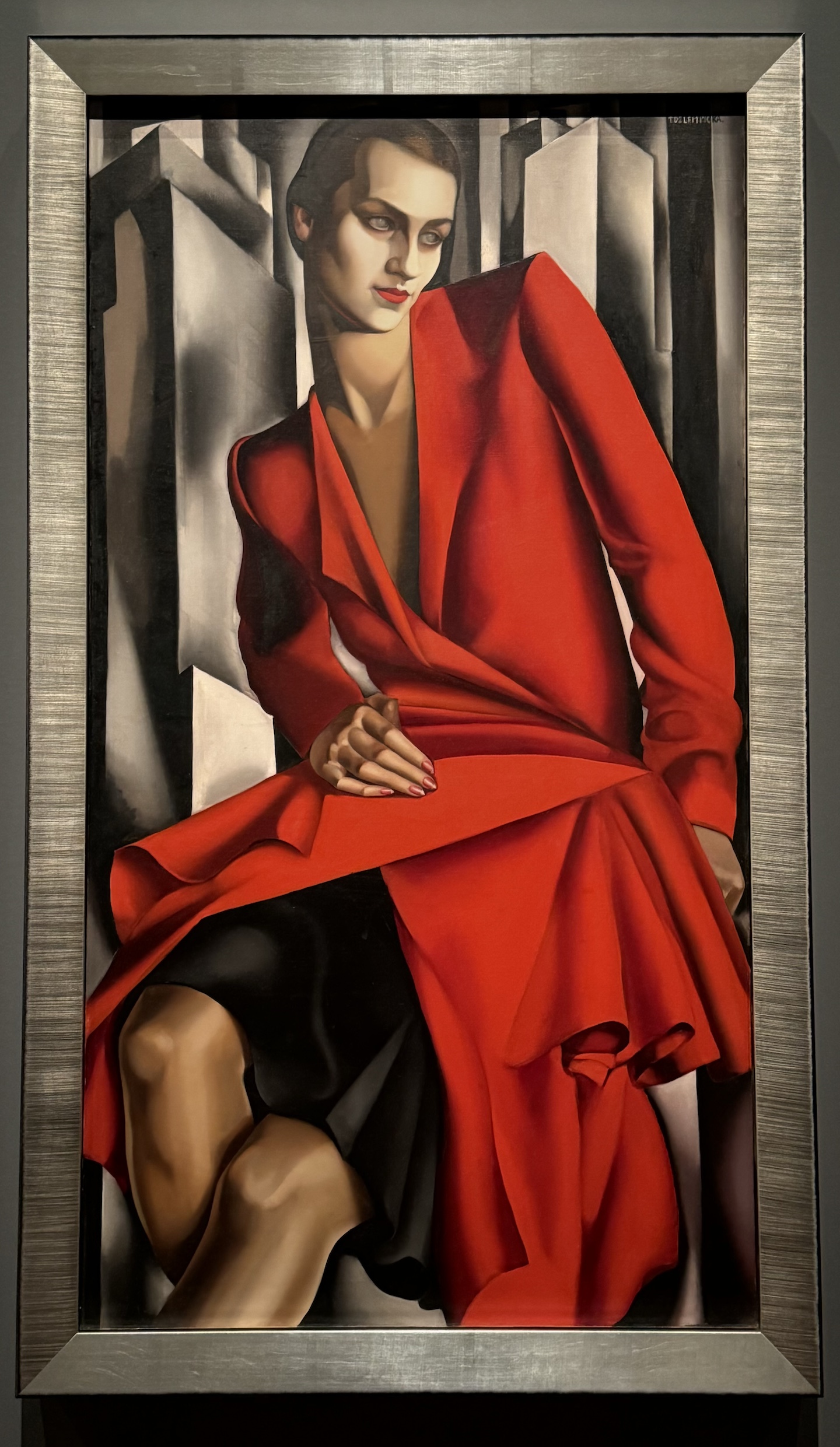 While Cassatt presented herself as a serious and dedicated artist, committed to her craft and the pursuit of artistic excellence, Tamara de Lempicka is a more colorful image in the public eye. She embodied the spirit of the Roaring Twenties. Her “modern woman” is achieved not just through her art, but also her own life style, which mirrored the Art Deco aesthetic she became known for—sleek, luxurious, and bold.