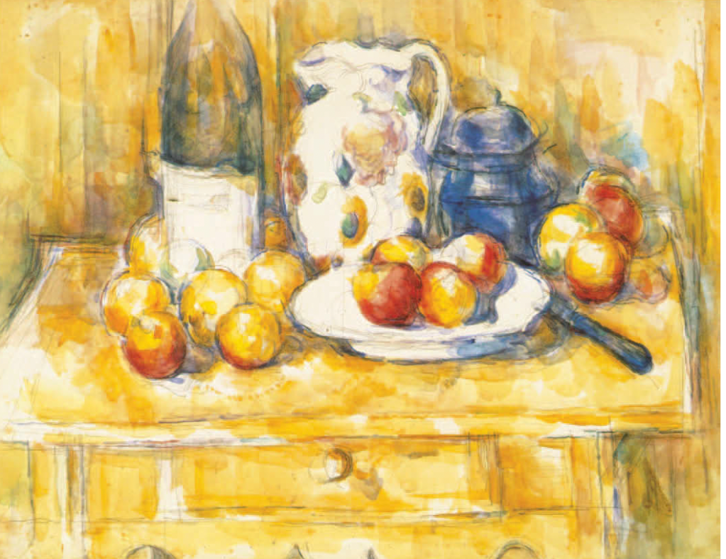 Unlike J. M. W. Turner (1775 – 1851) and other watercolorists, Cézanne adopts a touch by touch and color by color method. He layers translucent patches with gestural brushwork, resulting in a vibrant and casual overall appearance, with fragmentary and kaleidoscopic details. However, the actual process was deliberate and labor-intensive.