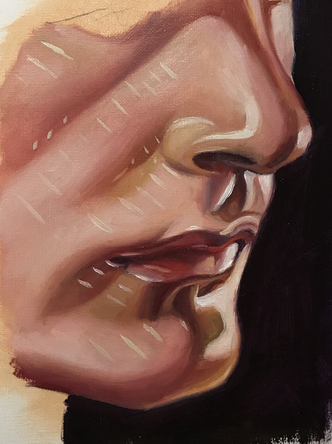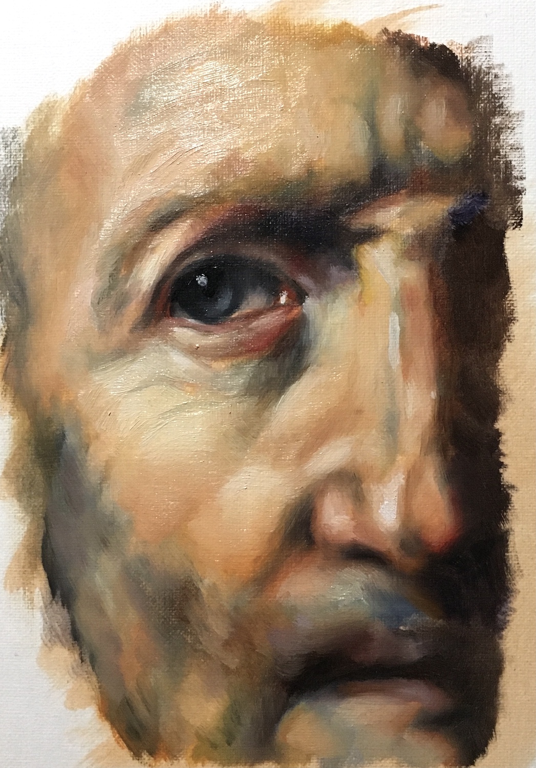 In attempting a master copy, I focused on replicating the subtle value changes. I have a tendency of using high contrast and high saturation in my own portrait painting. I hope, by compress and control the two, I could achieve a softness and luminous effect that is missing in my works. While oil paint is not as ideal to achieve this goal as pastel, I figured I would still learn a lot by pushing it as far as I could. I started a bit too heavy handed, and later had to spend layer upon layer to lighten things up, and contract the range of values. The result still felt too defined in some places, lacking the ethereal quality of Natoire’s original. Some of the airiness of the original comes from Natoire’s dancing line work, which I don’t have the skill to imitate with a brush. While Natoire captured a goddess, I painted a mortal – a lovely one, I think.