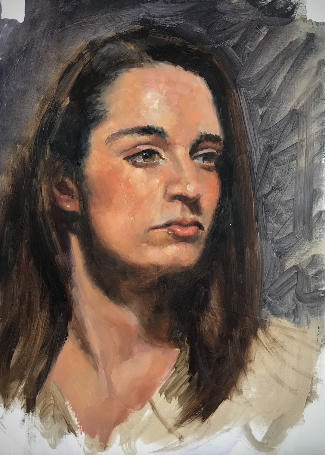 To some extent, I think I achieved what I set out to do—especially in the paintings of the modern women. Looseness has always been difficult for me when a photo sits in front of me. But these exercises also revealed a problem: without a reference to a real person, my “inventions” tend to drift toward the generic and idealized. If I kept going this way, the future paintings might all start looking alike.