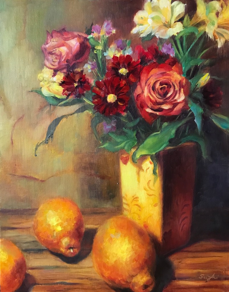 It is always a mystery to me how long it takes an Alla Prima painter to finish her work. Most of the demos I watched online were one to three hours long, and never did an artist claim it as a finished work. It is also hard to tell if the artist doing the demo was aiming at a complete work or just an oil portrait sketch. Plus, how do you even define the completeness of a piece? Those lovely and highly admired vignettes by the late Richard Schmid, are they finished works?