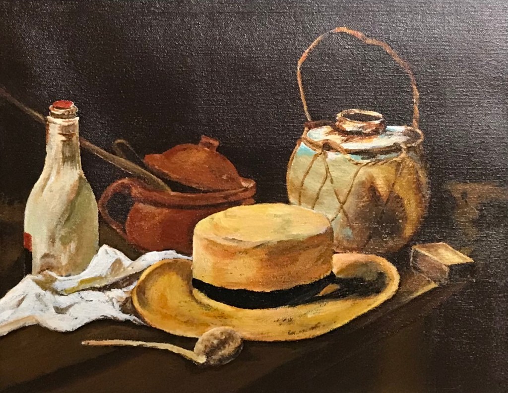This is a study done when I first experimented with acrylic (or painting with anything). I stared at the original for days couldn’t figure out how to achieve that sense of unity. Eventually I decided to paint the whole canvas with a dark shade of burnt sienna and “drawing” on top of it.