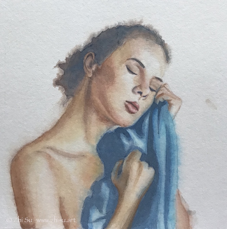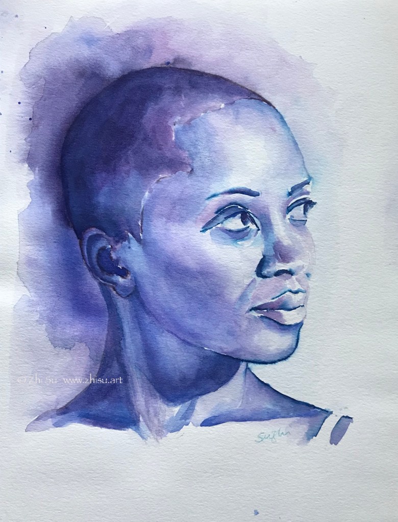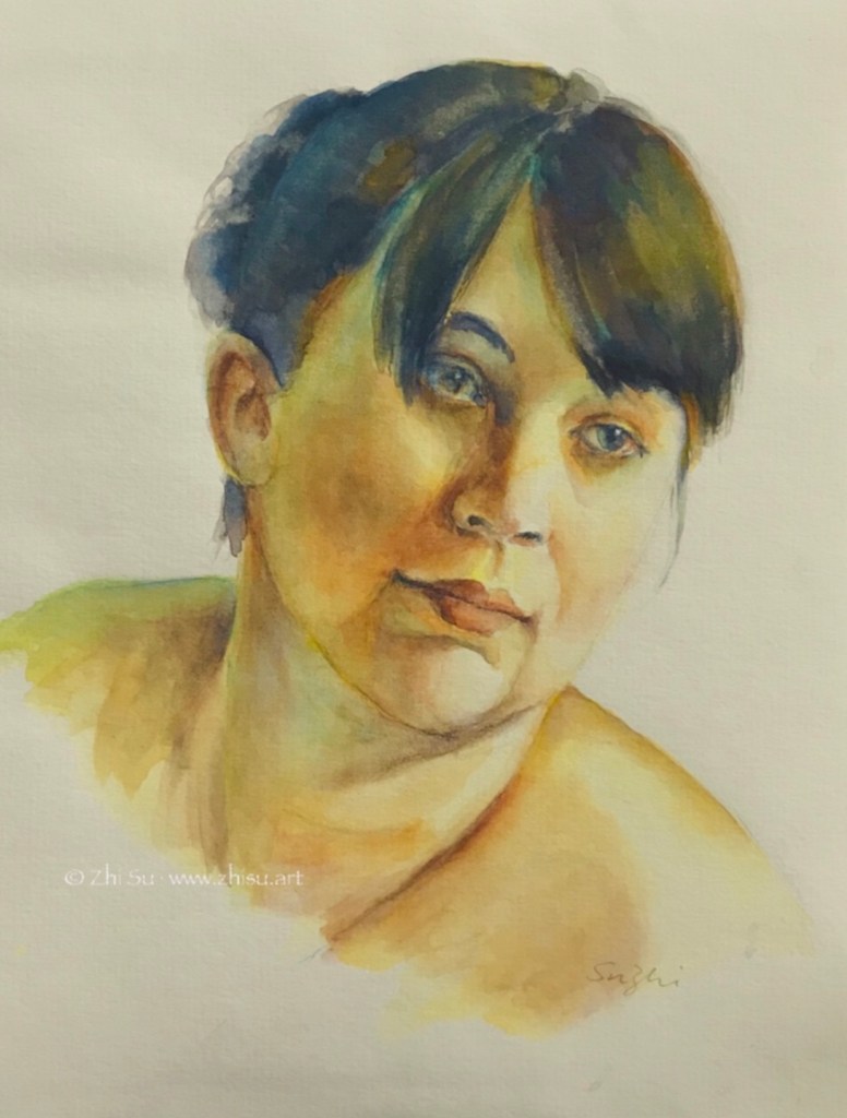 Portrait of a Young Woman, watercolor on paper, 7.5 x 10 in, April 2020