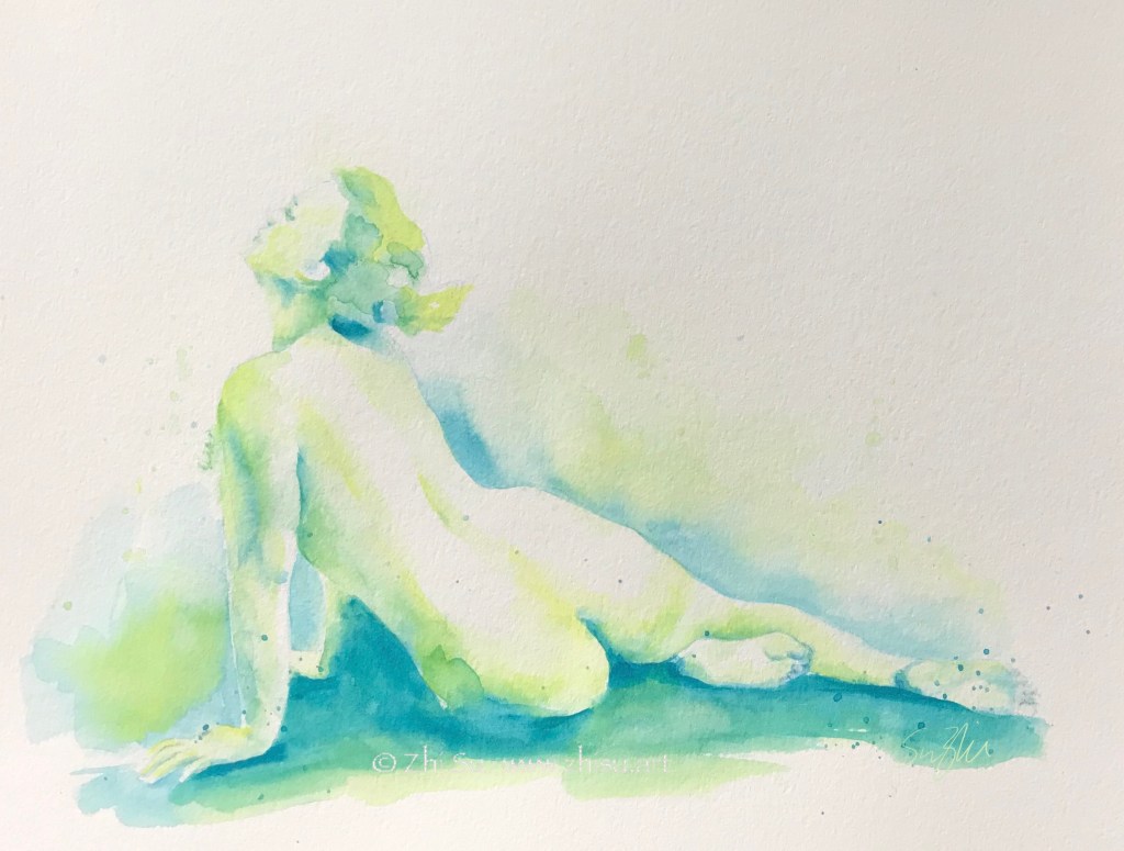Female Figure, watercolor on paper, 9 x 12 in, April 2020