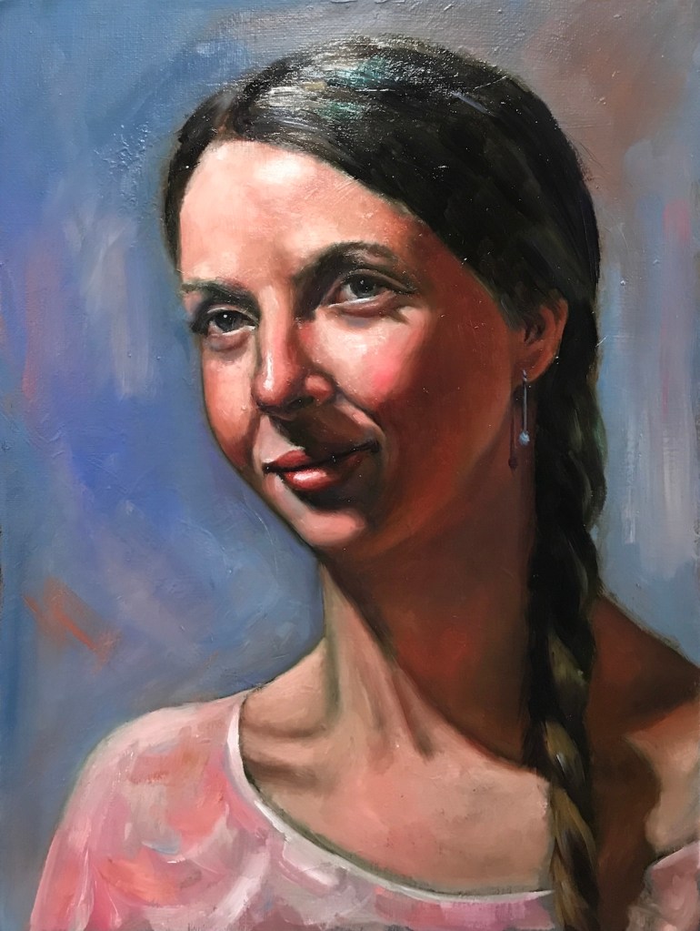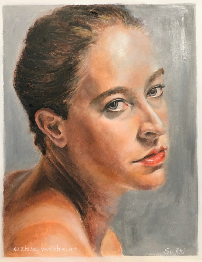 I have been more and more focusing on portrait painting in oil recently. Neither do I have the intention to become a portrait artist, nor do I want to switch my main medium to oil. It’s a practical choice. With portrait, I don’t need to spend much time choosing subject matters and thus narrowing on technique. There are plenty free references online, and there’s always the option of a mirror. Plus, it’s easier to find more comprehensive oil classes from online than other painting mediums.