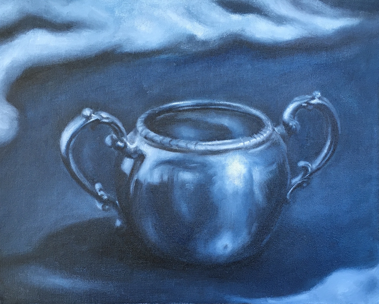 The last piece is a bit too much fun. I used Gamsol to dilute my paint and put on a thin layer of background in the beginning. Too much of it makes the paint “watery.” Normally I would wipe it off or wait for it to dry. This time instead, I added more to see what would happen. And wow! It ran down with all those interesting patterns! I don’t know if the piece was ruined or what – it’s a practice painting anyways, but it made me curious about what else this medium could do! 😉