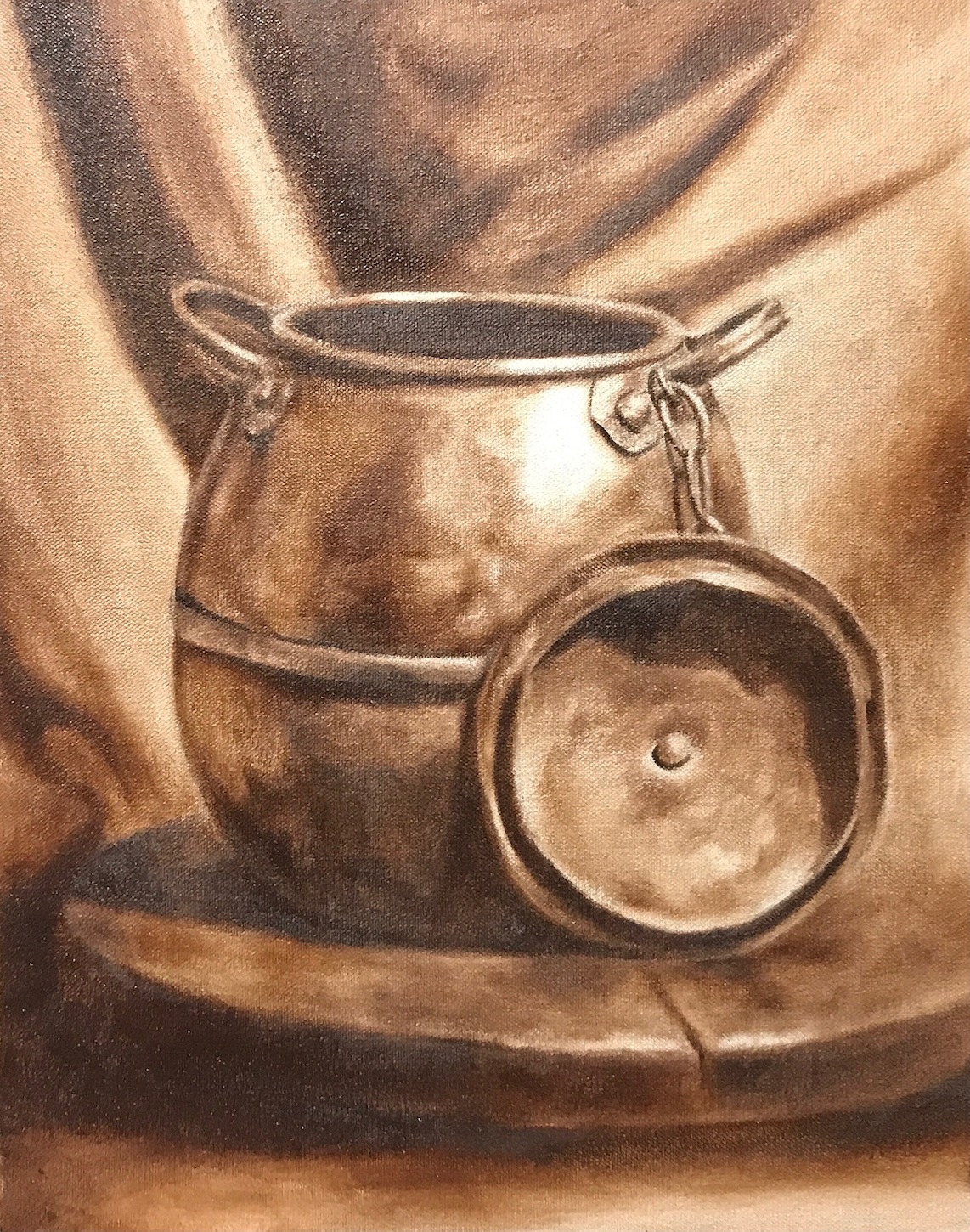 Still homework from Watts, burnt umber pick out, burnt umber and white, phthalo-blue, black and white respectively.