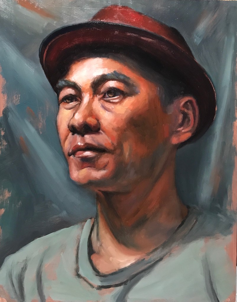 The first one was with an extremely talented young artist, Kailun Qu. Kai painted in alla prima style, fast, spontaneous, and effortless (seemingly). He gave effective critics without reservation, something I’ve been looking for for years. Here’s one of the portraits I did for the class:
